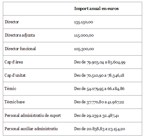 Captura de pantalla con la tabla retributiva de la Oficina Antifrau.